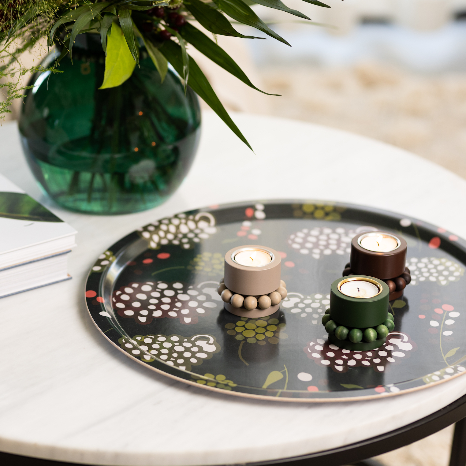 The Princess is a small but tough way to bring light into your home. This candleholder will definitely not stay in the shadows. It can take the heat, but also does well in the dark, as well as in drafty, cold and high places, holding its brightly colored head up high, wearing its signature bead wreath. That’s just how princesses are: they’re strong enough to withstand the small challenges everyday life throws at them. The Princess candleholder is a beloved member of the royal candleholder family, which has been designed by Pauliina Aarikka. The color range changes with the seasons, and the Princess is perfect for both straight candles and tealights, as is only fit for a royal lady. The Princess candleholder is made of wood. It comes with a single wreath made of wooden beads. Suitable for both tealights and straight candles. Available in different colors. Color:varnished wood Material: Birch, maple, metal Size: Height 5.5 cm, Ø 6 cm Handmade in Finland.