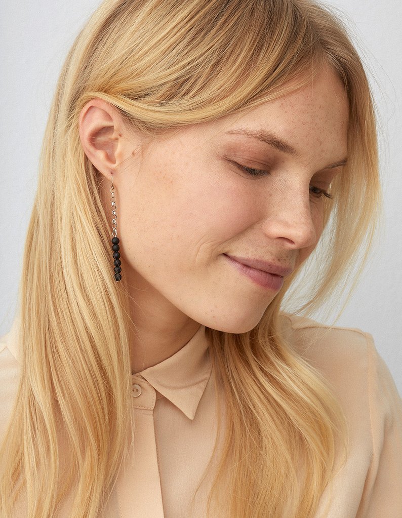 繊細な木製ビーズとチェーンを組み合わせて作られたAriel。