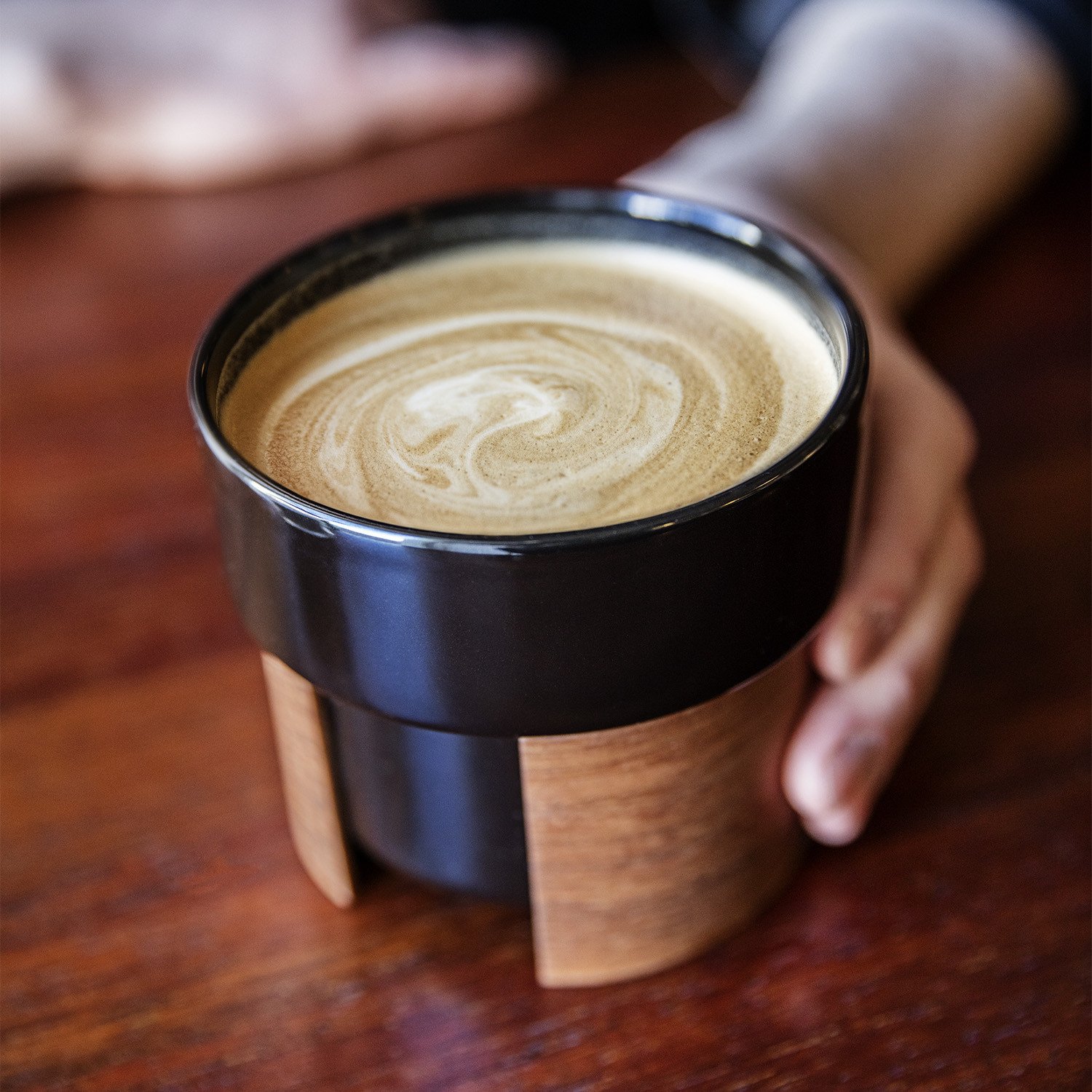 “Warmは、陶器とラミネート加工のプレイウッドを組み合わせた 紅茶とコーヒー用のカップとポットです。 陶器の持ち手の役目をするプレイウッドが、断熱としても機能しています。