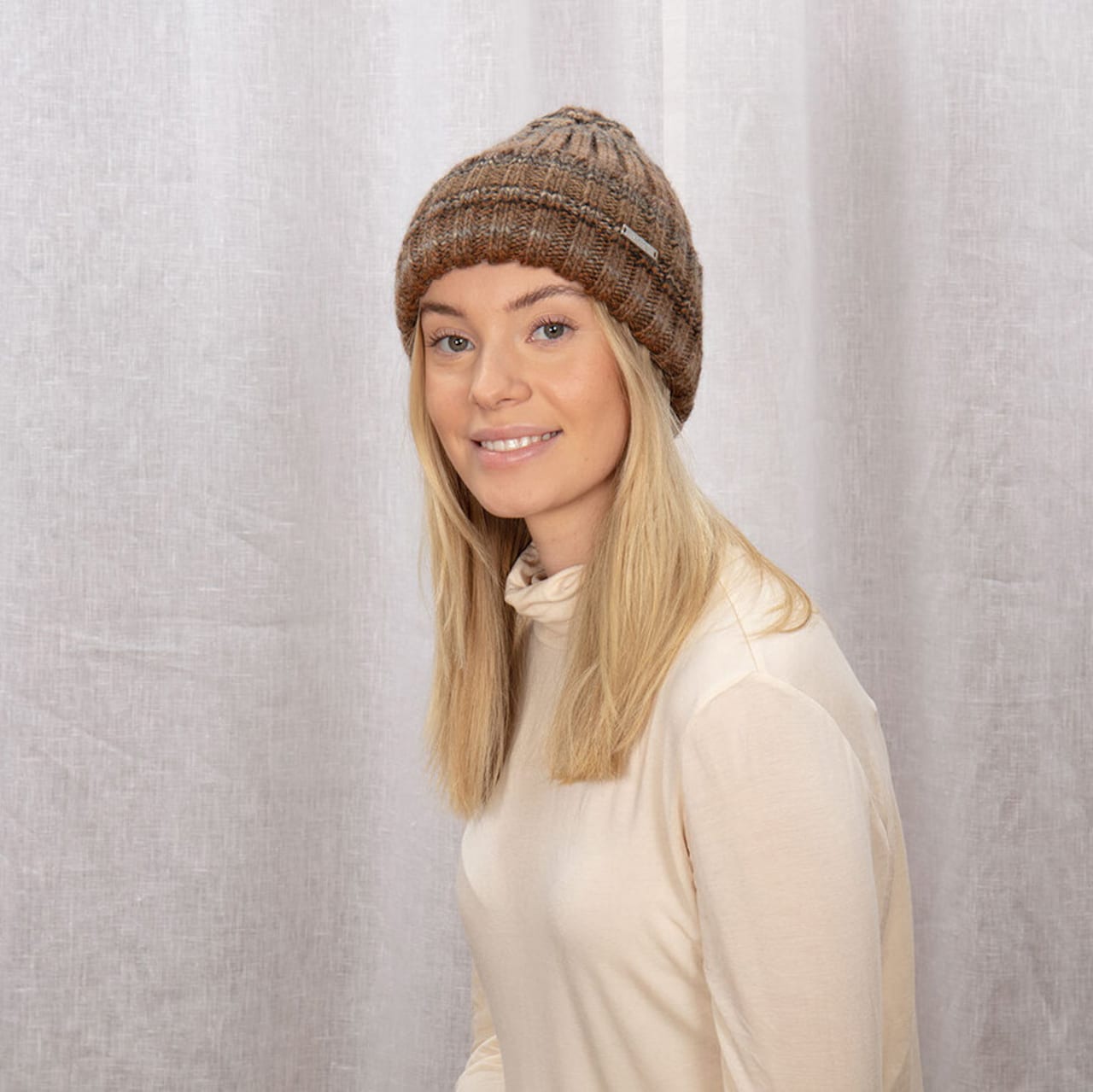 折り畳んだリブニットビーニーです。