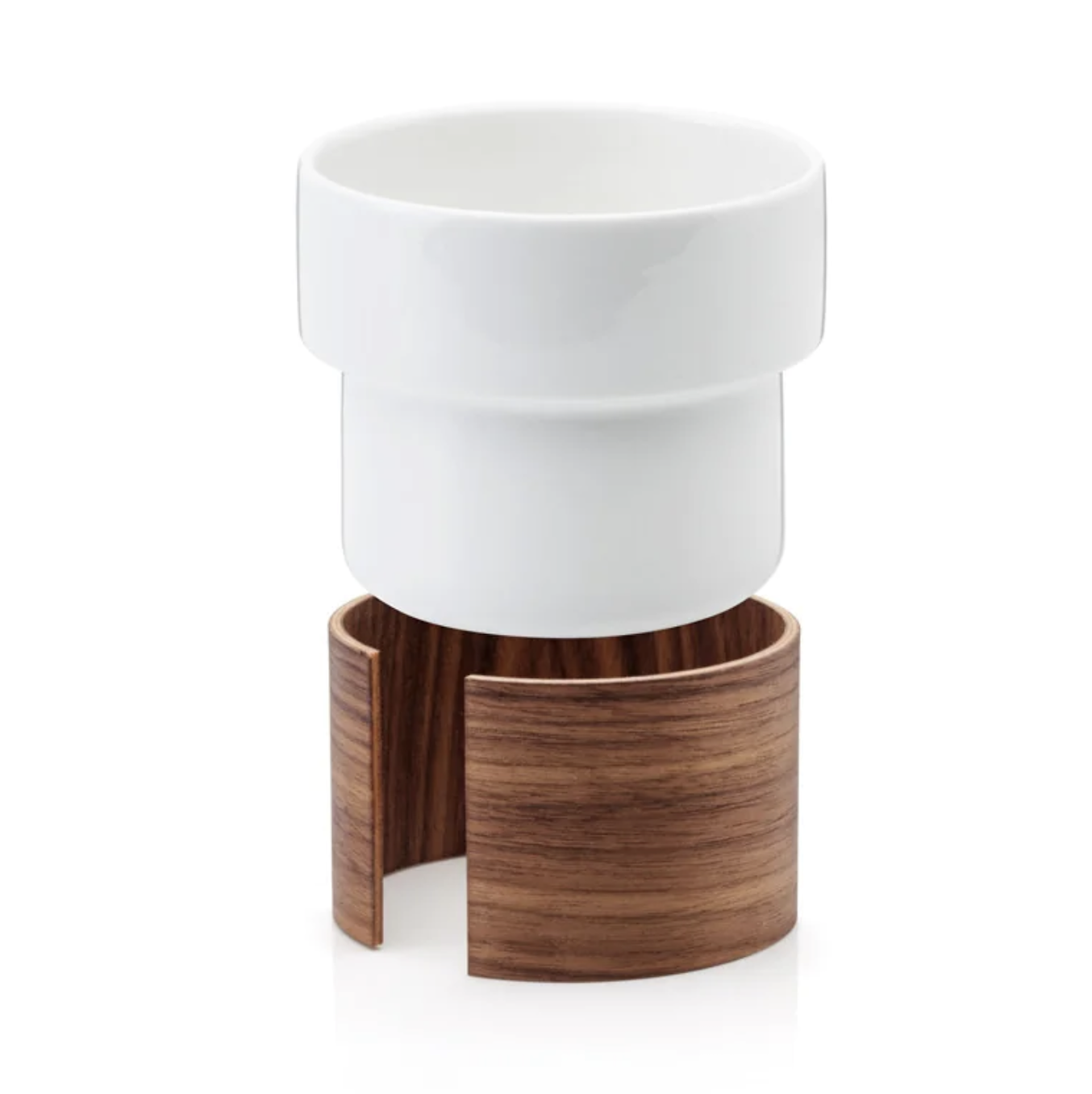 また、ピッタリと陶器にプレイウッドのカバーがフィットしていることで安定し、スタンドの役目を果たしています。