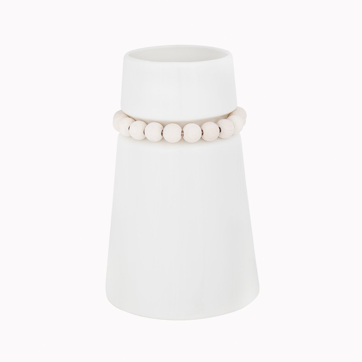 Aarikka’s Nuppu series is beautiful and quality white porcelain. The wooden bead wreaths garnish these delicate pieces. Nuppu brings joy to everyday settings, festive occasions and also makes a perfect gift. The vase is beautiful on its own and even more in settings. Combine with the Nuppu tableware and Puisto servers for a complete look!